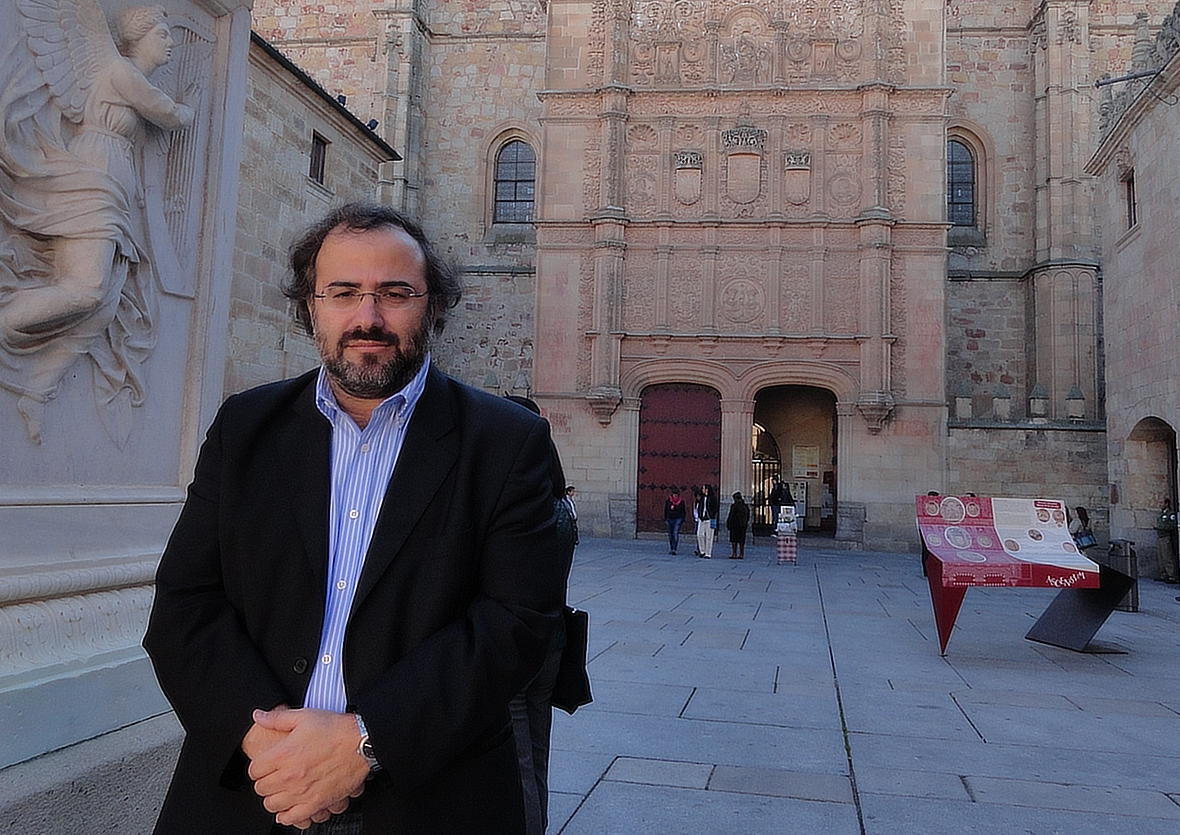 Alencart en el patio de Escuelas de la Universidad de Salamanca (foto de Eduardo Moreno)
