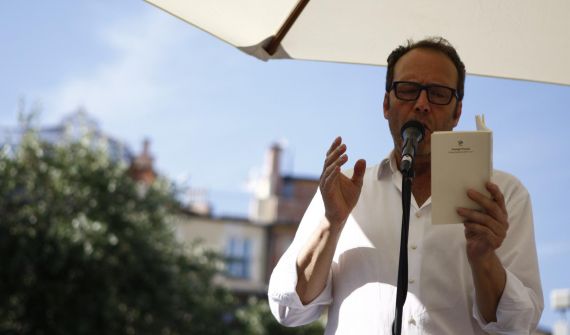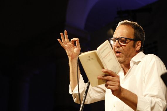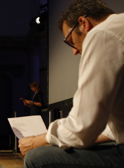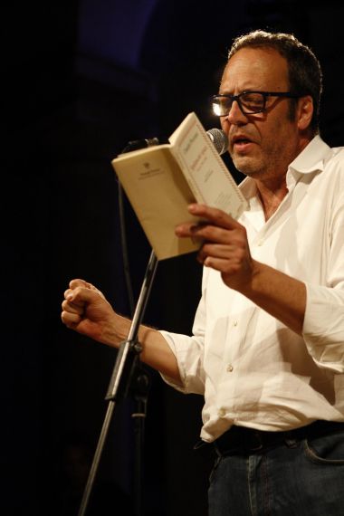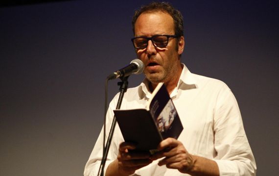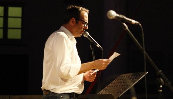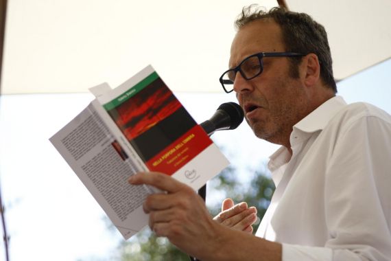 Claudio Pozzani leyendo en el Festival de Poesía de Génova