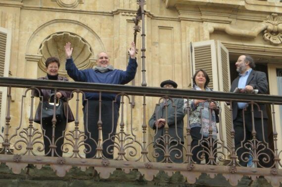 Enrique Viloria e Iraida Páez, en el Balcón del Ayuntamiento de Salamanca