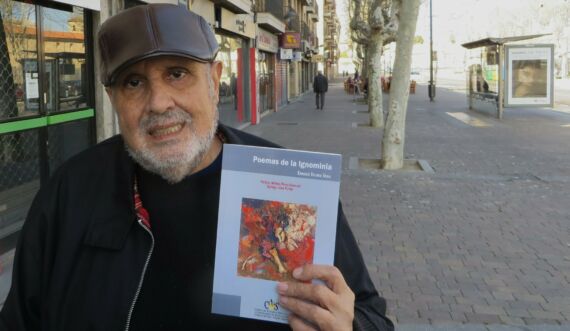 Enrique Viloria con su poemario (foto de Jacqueline Alencar)