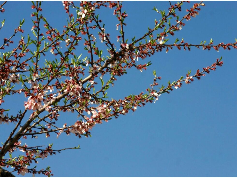 En este Jardín de claridad donde siento tan cerca el paraíso… en el que hay tantos árboles como metáforas para ellos, los almendros en movimiento, son palabras escritas en los cielos; sus flores, son estrofas errantes llevadas por el ritmo de la brisa de la tarde…y el silencio, fácilmente hace del lugar un concierto complejo; solar de blanquecinos suaves y rosados colores de la tarde venidos a mi memoria, con sus días y sus costumbres, con sus caminos abiertos y sus paisajes tranquilos y cálidos.