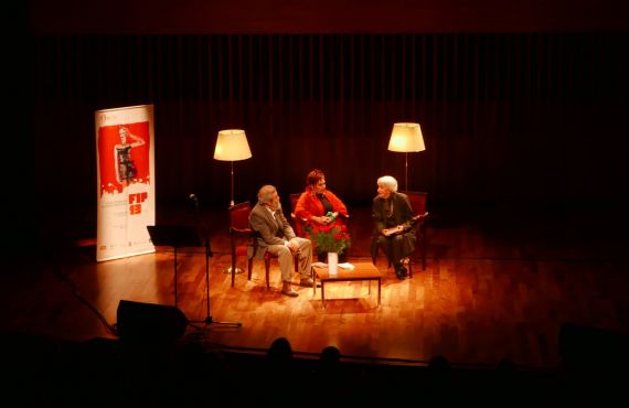 Luis Chitarroni, Graciela Aráoz e Ida Vitale, durante el Festival de Poesía de Buenos Aires (junio).