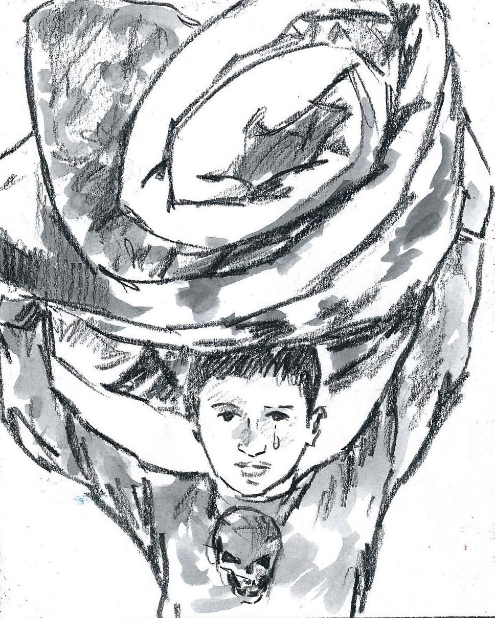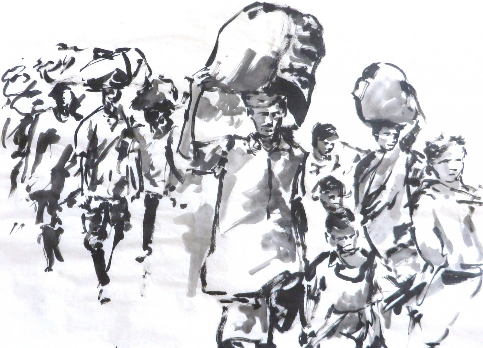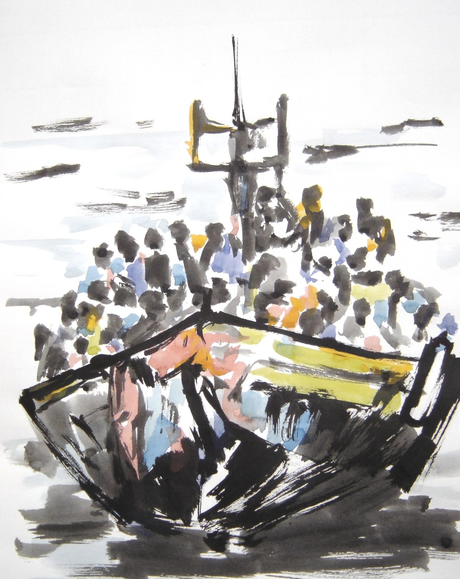 Alguien dijo: «El placer de viajar lo da la perspectiva del regreso». Aquellos que en abigarrada mu;titud «salen a viajar» buscando un espacio donde vivir, salen sin perspectiva del regreso. Dan ganas de llorar. Gracias, Alfredo, por tus poemas y las ilustraciones tan contundentes.