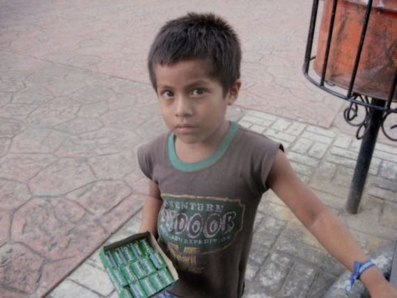 (Niño de tres años vendiendo chicles)