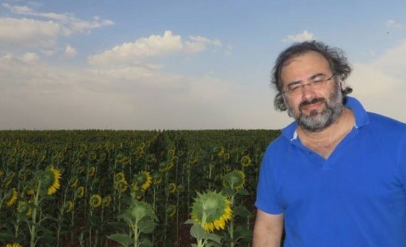 Alfredo Pérez Alencart en un campo de girasoles, camino a El Arco (foto de Jacqueline Alencar)