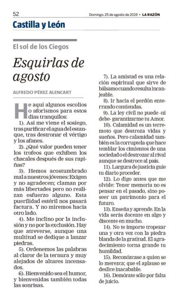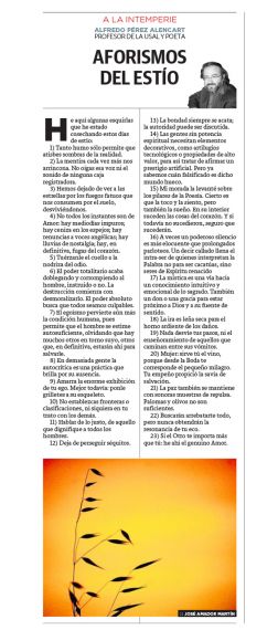 AFORISMOS DEL ESTÍO. ESQUIRLAS DE ALFREDO PÉREZ ALENCART