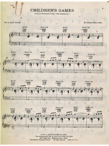 Ese mismo año 1967 Jobim recibe una invitación de Frank Sinatra para grabar en el sello Reprise, bajo la conducción del director y arreglista Claus Ogerman una selección de sus piezas, interpretadas por el gran cantante norteamericano, cuyo álbum lleva los nombres de pila de ambos: Francis Albert Sinatra y Antonio Carlos Jobim. Debo anotar aquí una infidencia personal. Tal álbum concertó para mí la admiración hacia ambos músicos en un LP que fue colocado obsesivamente en mi antiguo tocadiscos de adolescencia en la ciudad de San Felipe, cuya maravillosa sonoridad era compartida con numerosos amigos y familiares. Buena parte del poco inglés que sé lo debo a la perfecta dicción de Frank Sinatra, cuyas canciones seguía álbum tras álbum, y era considerado por muchos como la mejor voz masculina del mundo. A la par de ser uno de los deleites musicales más amplios que me pude prodigar, Sinatra fue para mí la mejor cátedra de inglés. Nadie como él, cantando en ese idioma, pronuncia las palabras con tal claridad, además de los matices y la belleza implícita de su voz. Disfruté de este disco apenas a los diecisiete años, gracias al alto grado lírico de ambos músicos y a los magníficos arreglos orquestales de Ogerman, se produjo en mí un especial embeleso, confirmado ahora, cuando termino de poner el casete que atesoro. Aquí Jobim le acompaña con la guitarra a Sinatra y hace eventuales intervenciones vocales muy sutiles, que aportan delicados relieves a la magnífica voz del cantante estadounidense.