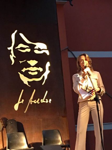 En ese escenario cálido y emocionante se mueve Bárbara Garassino, la narradora genovesa. Una mujer esbelta, navegante de su interioridad: ella parece un pensamiento. No desarticula nada en su entorno, no desacomoda el ambiente. Es totalmente serena. La gente que comienza a llegar para alguna de las actividades de la Stanza de la Poesía, la saluda con familiaridad.