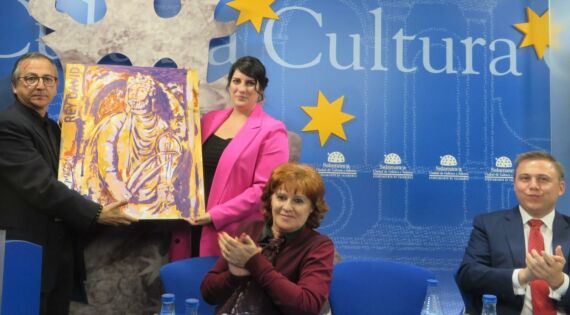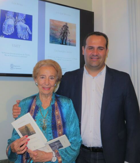 Pilar Fernández Labrador y el diputado de cultura David Mingo, con los libros premiados en 2019 (foto de Jacqueline Alencar)