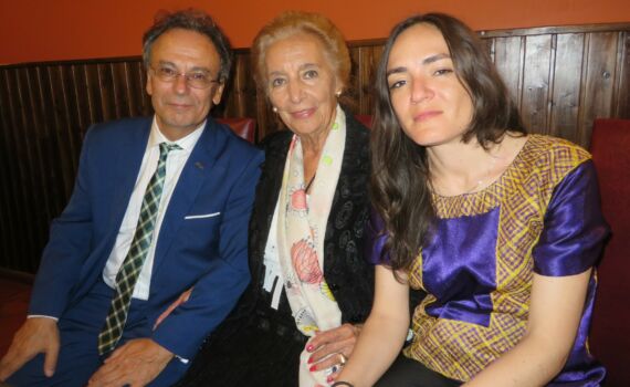 Pilar Fernández Labrador con José Pulido Navas e Ingrid Valencia, ganadores de la tercera edición del Premio