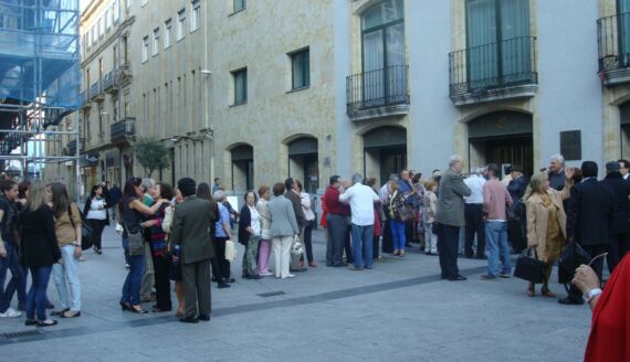 Cola ante el Teatro Liceo de Salamanca, para asistir a los Encuentro de Poetas Iberoamericanos.
