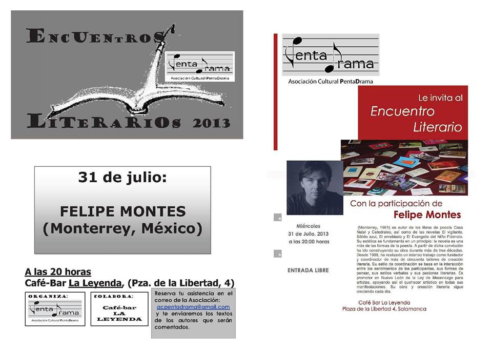 Me acompañarán mis admirados Mª Ángeles Pérez López y Andrés Alén Librería Hydria (Salamanca) 1 de Junio, sábado, a las 20 horas En septiembre de 2012 mi poemario Tierra con nosotros, fue premiado en un concurso a que la editorial Seleer realizó a través del blog Buenas noches Nueva Orleans del autor Fernando López Guisado: Concurso Guisado ...