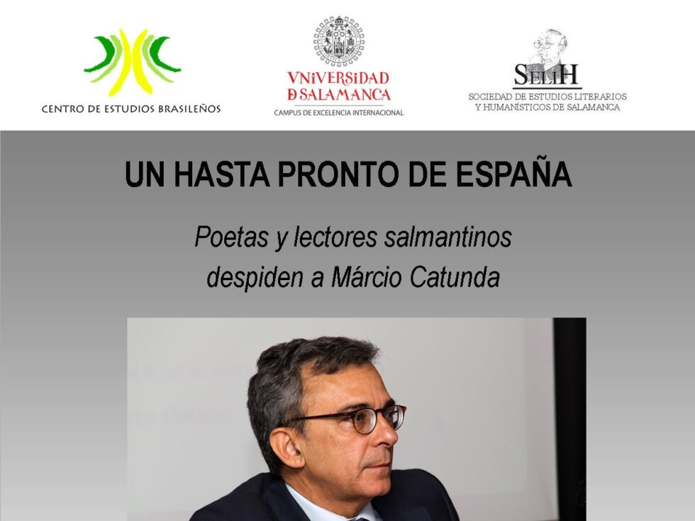 Poetas salmantinos despiden a Márcio Catunda El Centro de Estudios Brasileños de la Universidad de Salamanca (CEBUSAL) y la Sociedad de Estudios Literarios y Humanísticos de Salamanca (SELIH) han organizado un encuentro con el poeta brasileño Márcio Catunda (Fortaleza, Ceará, 1957), bajo el título de “Un hasta pronto de España”. Catunda, hasta ahora Consejero de Prensa ...