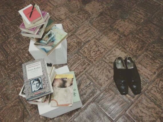 -Ahora hemos vuelto a la casa donde queda la floristería de Argelia. Esto debido a que el año pasado tuve varías crisis muy fuertes, afectado porque no se consiguen los psicotrópicos con facilidad y por supuesto, por las condiciones especiales, pero indeseables para todo ciudadano, que ha traído consigo la pandemia, además de pérdidas valiosas y dolor, primeramente. Vivíamos en una casa en las afueras de Punto Fijo, solos, como unos recién casados, pero tuvimos que regresar, pues ya antes, cuando comenzamos la relación vivimos aquí. Como ella también es decoradora de espacios, se ha encargado de que estemos acompañados por todos aquellos objetos que han tenido un significado en nuestras vidas, y desde luego por mis cuadros, los poemas visuales/collages. Igualmente tenemos con nosotros dos perros pinchall: Stivi y Pinky, padre e hijo. En la otra casa tuvimos un gato llamado Gris, y como el gato es dueño como ninguno de su libertad buscó otro hogar cuando nos venimos.
