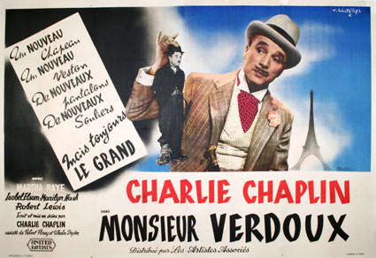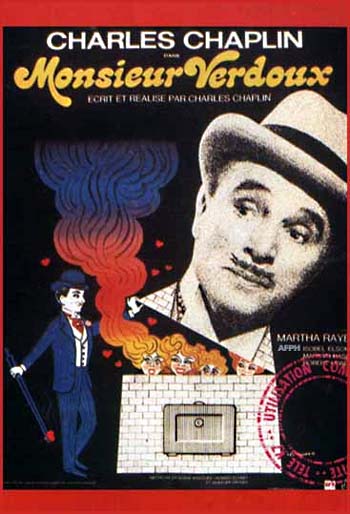El modo en que Charles Chaplin aborda en su filme Monsieur Verdoux (1947) el tema del asesino en serie es verdaderamente admirable. No hace ninguna concesión al estereotipo del asesino que vemos en el cine europeo o norteamericano de cualquier tiempo, donde imperan las interminables persecuciones de la policía o un inventario de escenas cruentas, disparos o laberinticos desplazamientos por ciudades. En plena época de crisis económica en Europa, cuando en Francia se produce el crack financiero de la bolsa de valores en 1930 y un enorme desempleo es el principal reflejo de esa crisis, tenemos a banqueros y trabajadores desesperados, muchos de ellos suicidas, y a la gente sumida en una gran decepción, creando un terreno propicio para ganarse la vida de modo ilícito, con el fraude como método principal.