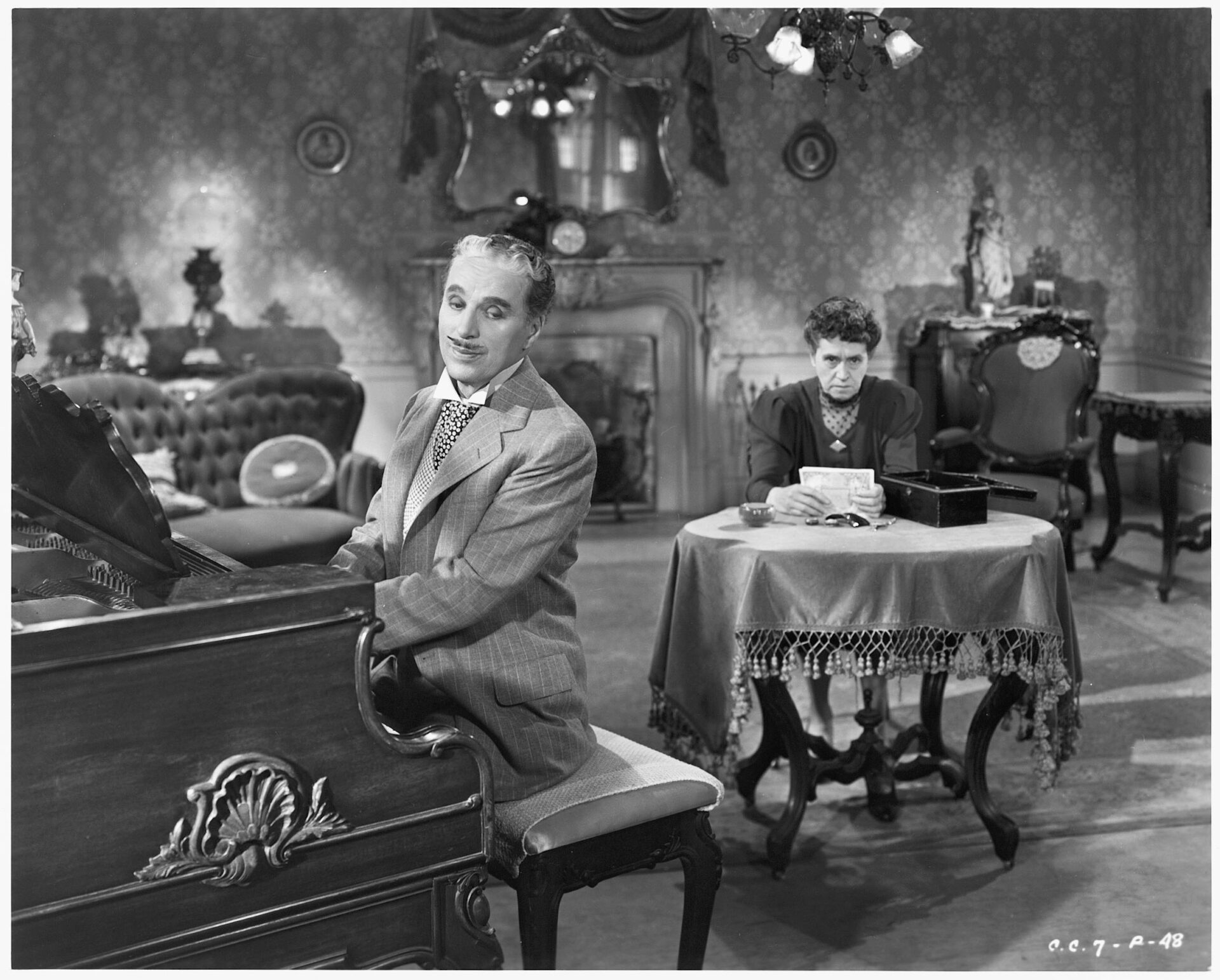 Con esta comedia de asesinatos, Chaplin lleva a un grado maestro el arte de la actuación y de la dirección simultáneas, a la par de componer la cinta musical del filme y de hacer un casting impecable. Se basó Chaplin en la historia verdadera del famoso asesino Henry Desiré Landrú, ejecutado en 1922, la cual fue trabajada en base a una idea original de Orson Welles, (quien la vendió al director británico gracias a un contrato puntual por 5000 dólares) nos hace presenciar una de las obras centrales de la etapa de madurez del comediante inglés, a la que pertenece la genial Candilejas, (1952). Ambas constituyen, a mi entender, las obras maestras del cine de Chaplin y del cine de todos los tiempos.