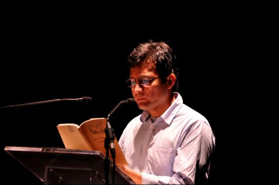 Rodríguez Gaona leyendo en el Teatro Liceo de Salamanca (fot de José Amador Martín)