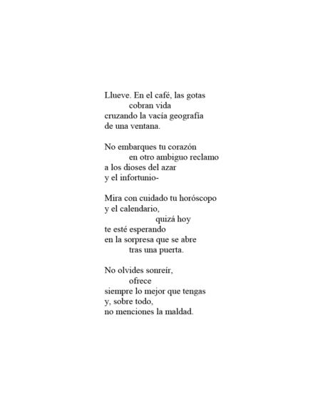Crear en Salamanca tiene la satisfacción de difundir esta muestra de la última publicación de Martín Rodríguez-Gaona (Lima, Perú, 1969), poeta, ensayista y traductor. Entre sus poemarios están Pista de baile (1997), Parque infantil (Pre-Textos, 2005), Códex de los poderes y los encantos (2011), Madrid, línea circular (2013, Premio Cáceres Patrimonio de la Humanidad) y Motivos fuera del tiempo: las ruinas (Pre-Textos, 2020). Sus ensayos Mejorando lo presente. Poesía española última: posmodernidad, humanismo y redes (2010) y La lira de las masas. Internet y la crisis de la ciudad letrada (2019, X Premio Málaga) son pioneros en el análisis de la poesía en su adaptación a la cultura digital. Su obra como traductor incluye libros de John Ashbery, John Giorno, Jack Spicer, Brian Dedora y Alice Notley. En la Residencia de Estudiantes organizó recitales y conferencias con poetas como Seamus Heaney, José Watanabe y Gonzalo Rojas, y editó libros de Olga Orozco, Blanca Varela, José Ángel Valente y Jaime Gil de Biedma, entre otros.