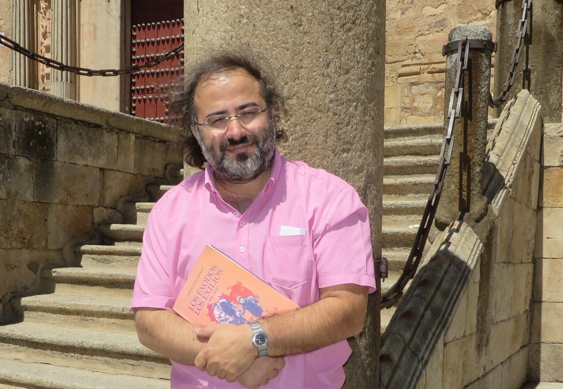 Alfredo Pérez Alencart, delante del Colegio Fonseca (Foto de Sinhá da Costa)