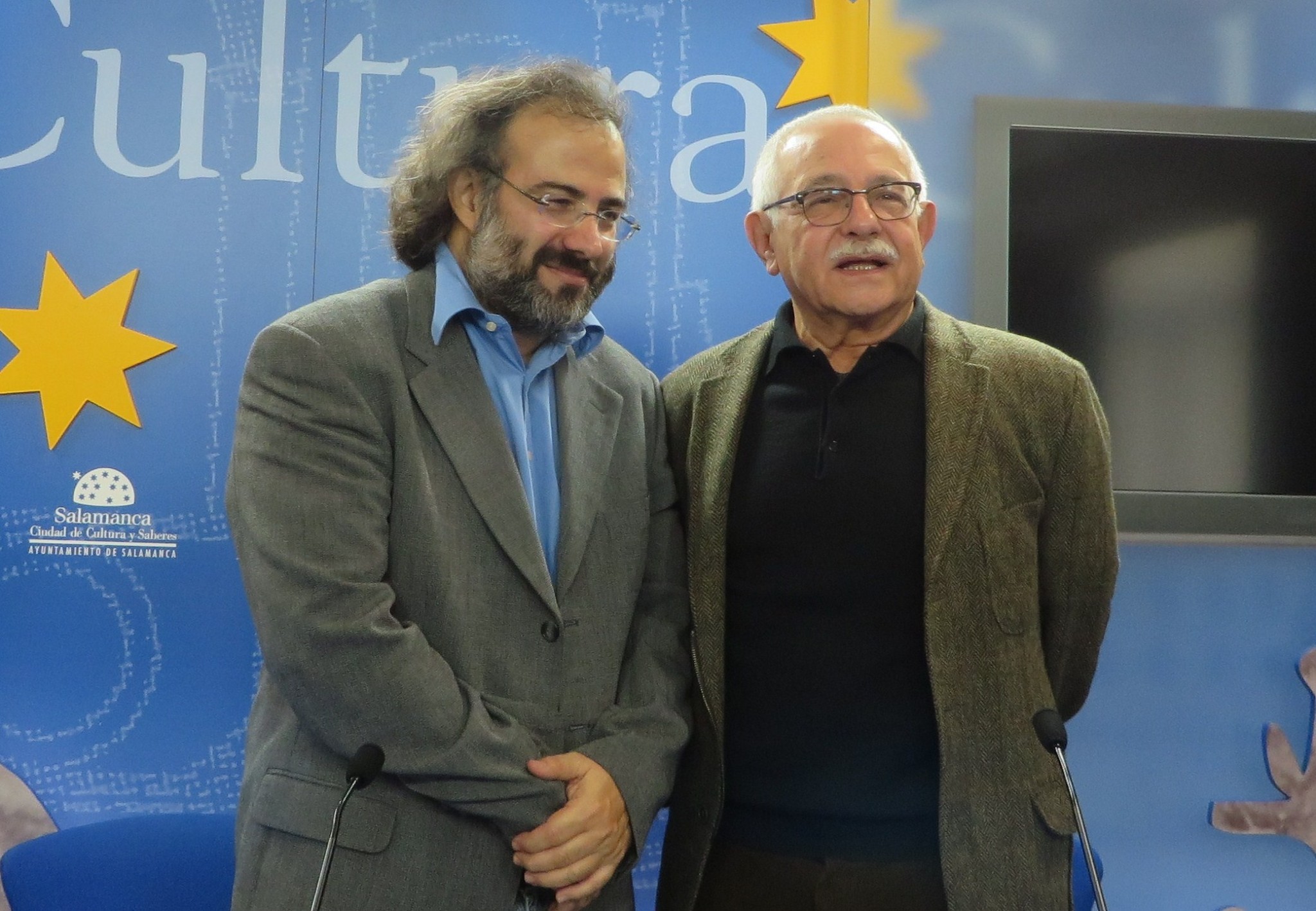 Los poetas Alfredo Pérez Alencart y Pío E. Serrano, en la rueda de prensa para dar a conocer el ganador del V Premio Gastón Baquero