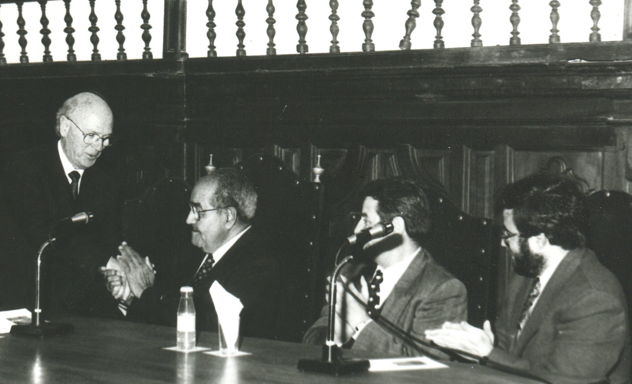 Alfonso Ortega, Baquero, De Vicente y Alfredo Pérez Alencart, en la Pontificia (foto España, Salamanca 1993)