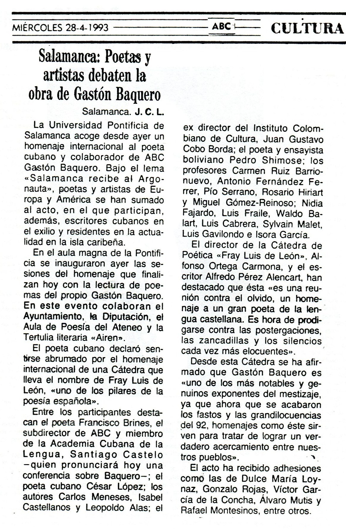 Crónica para ABC del entonces joven periodista Juan Carlos López Pinto, hoy director de SALAMANCArtv AL DÍA