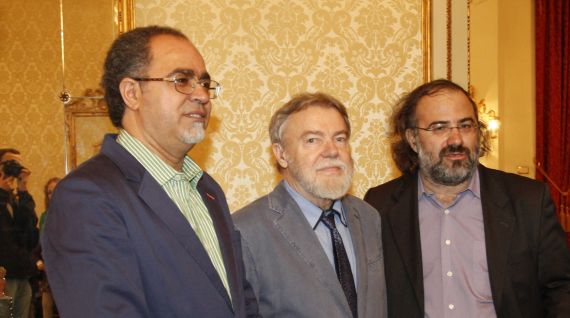 Abdul Hadi Sadoun (Irak), Juri Talvet (Estonia) y Alfredo Pérez Alencart (Perú-España) en el Ayuntamiento de Salamanca