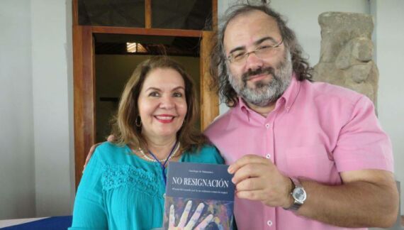 Isolda Hurtado y A. P. Alencart, en Granada (Nicaragua), con un ejemplar de No resignación (foto de Jacqueline Alencar)