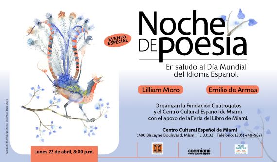 Crear en Salamanca se congratula en difundir cuatro de los textos de Lilliam Moro y Emilio de Armas leyeron en Miami el pasado 22 de abril. El acto. organizado por la Fundación Cuatrogatos, se celebró en el Centro Cultural Español y contó con el apoyo de la Feria del Libro del Miami Dade College. Esta velada llevó por título: “ Noche de poesía con Lilliam Moro y Emilio de Armas”.