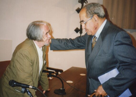 Carlos Edmundo de Ory y Gastón Baquero en la Universidad de Salamanca (foto de A.P. Alencart, 1992)