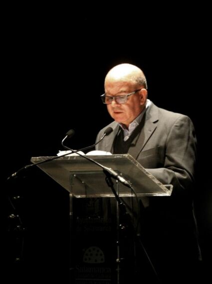 Victor Oliveira Mateus leyendo en el Teatro Liceo de Salamanca (foto de José Amador Martín)