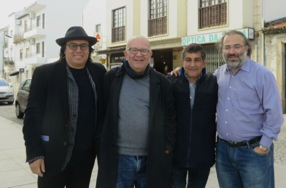 Los poetas Álvaro Mata, Victor O. Mateus, el editor J. A. Pinto y A. P. Alencart en Castelo Branco