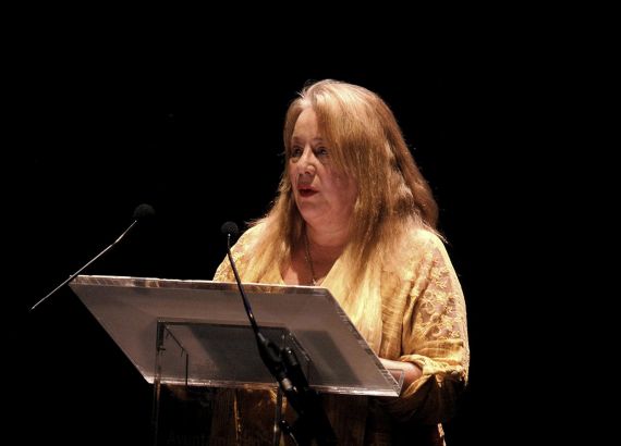 Macarena Barahona leyendo en el Teatro Liceo de Salamanca (foto de José Amador Martín)