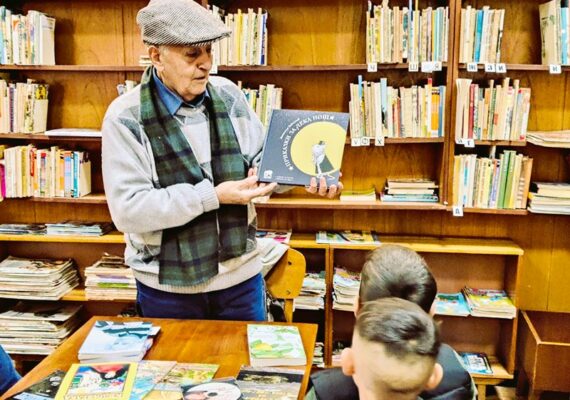 El escritor búlgaro Dimitar Niklenov leyendo sus cuentos a los niños