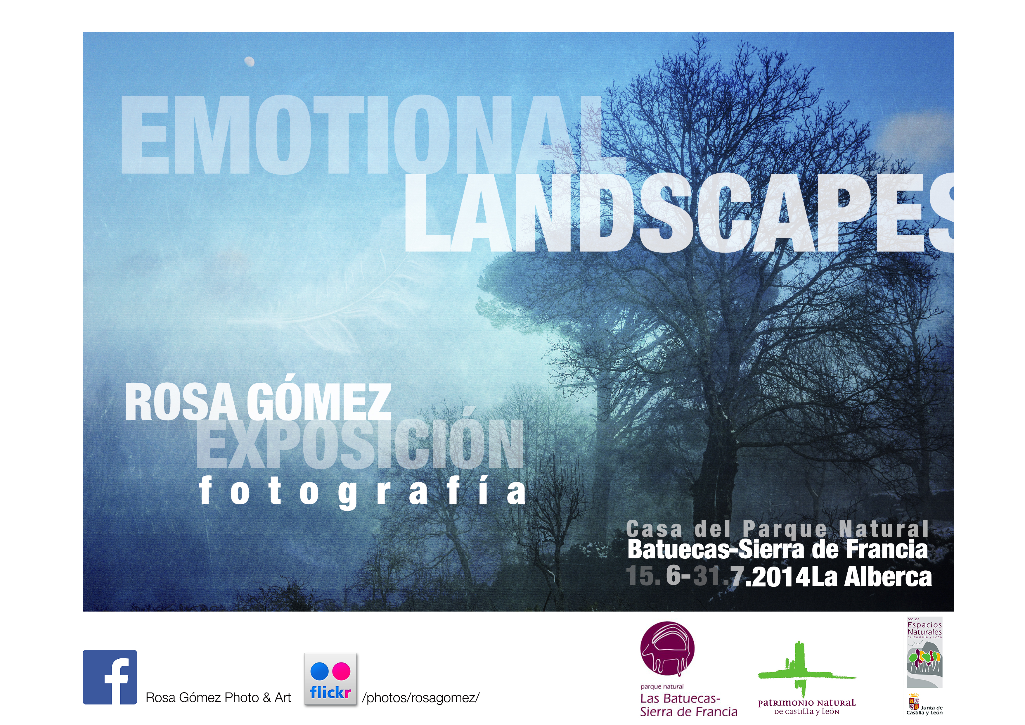 EMOTIONAL LANDSCAPES I. Melodías del Tiempo y de la Luz, es la visión de la fotógrafa nacida en La Alberca (Salamanca), Rosa Gómez, que se puede admirar en La Casa del Parque Natural de las Batuecas –Sierra de Francia. Un acercamiento, en profundidad a los distintos mundos de Rosa, una colección de fotos de paisajes y personas que habitan nuestra sierra en tránsito hacia sus propios paisajes. La imagen virtual que de esos espacios tenemos se nos transforma en una realidad palpable en la colección de fotos que se muestran y desde esa perspectiva la poética de la fotógrafo-poeta se percibe no como una mera visión de imágenes sino que desde el principio se muestra cargada de aromas y vida, vida y aroma del espíritu cercano de Rosa Gómez.