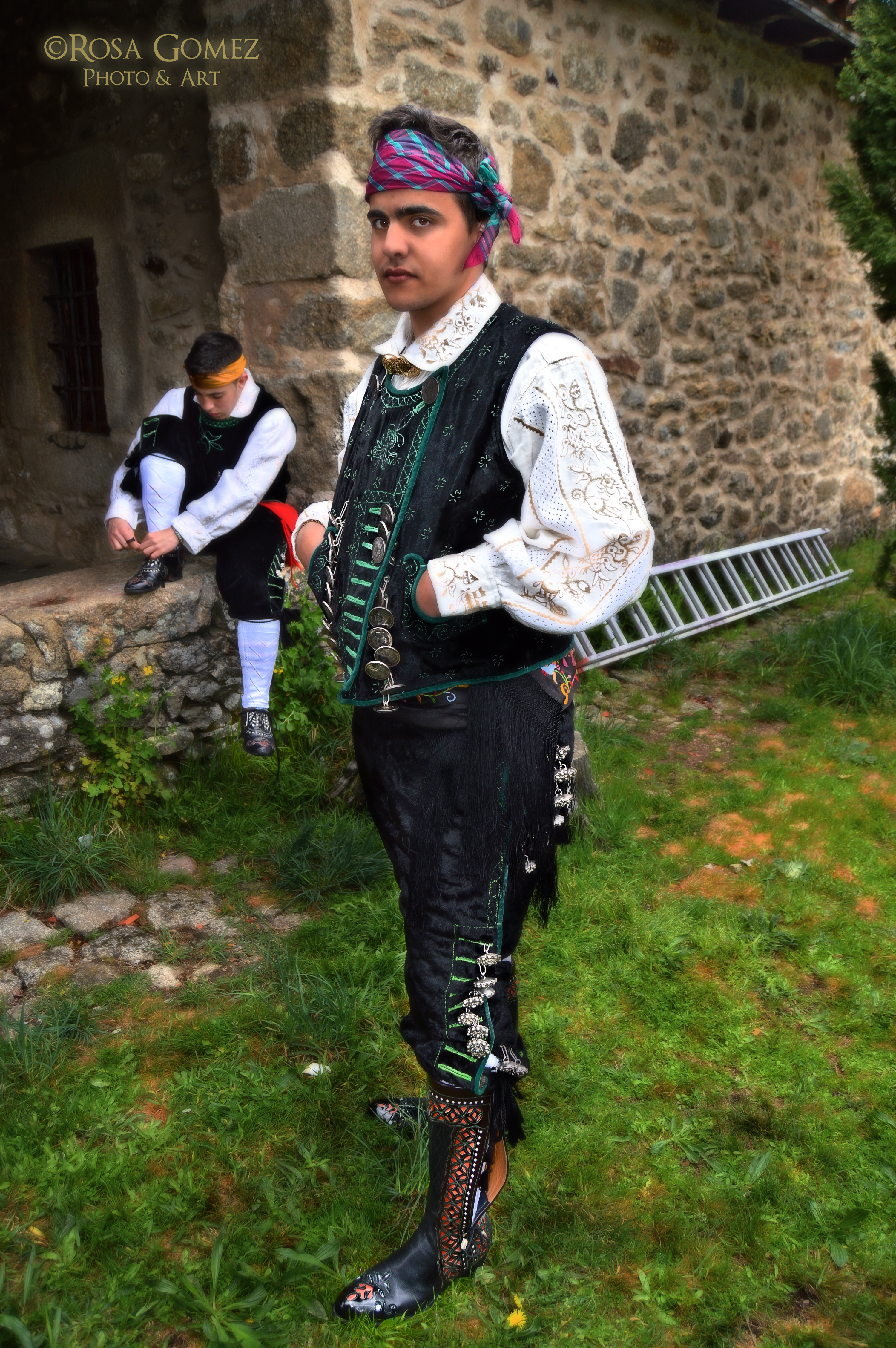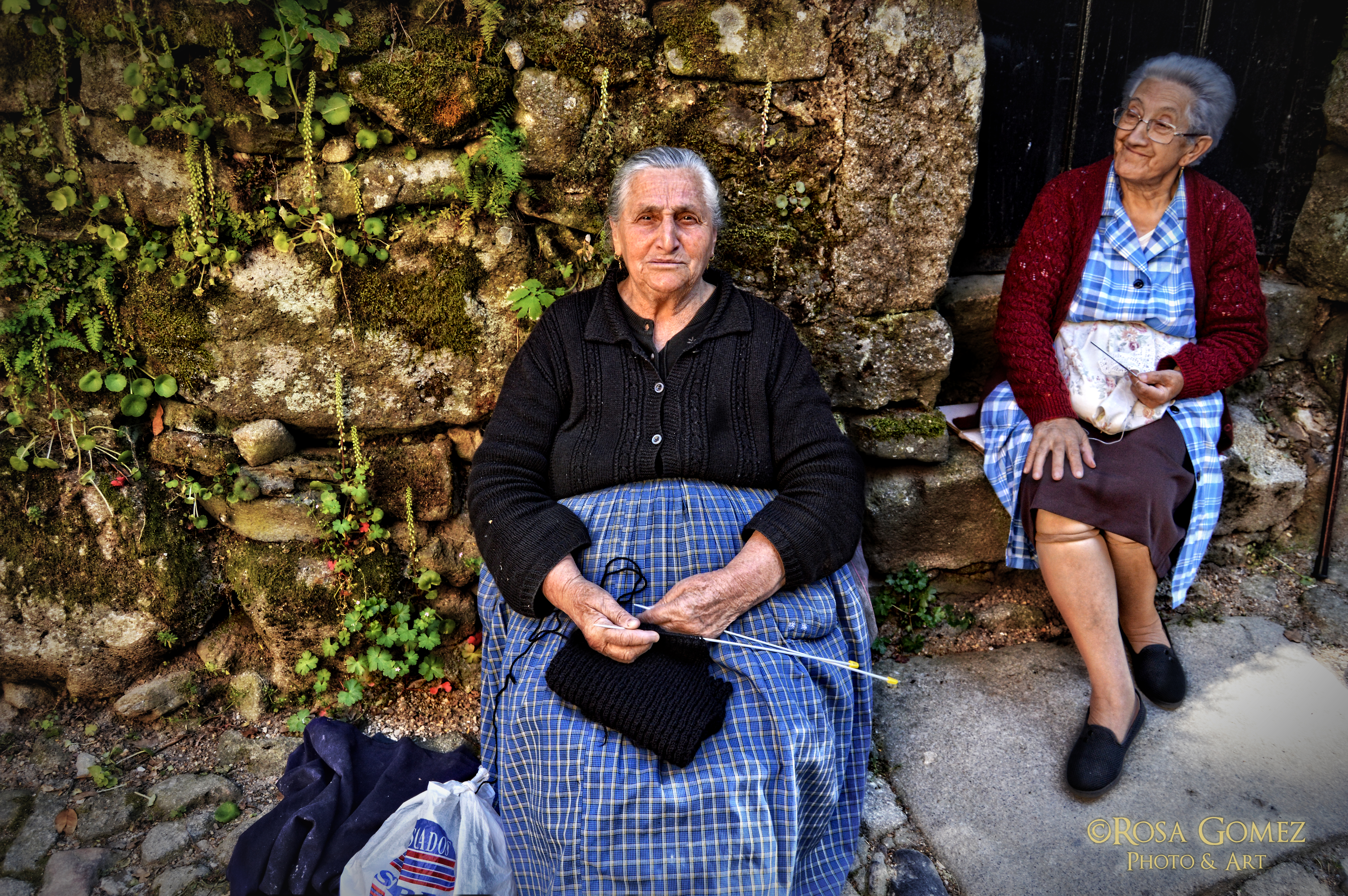 Algunas fotografías tienen una misteriosa carga de profundidad, que nos permite conocer, desde otra perspectiva, los paredones, el conjunto urbano de La Alberca o el misterio de las sierras y los cielos, como telón de fondo; pero también los seres: esos niños y niñas ataviados con las indumentarias antiguas para las celebraciones, o esas mujeres –Petra, Teresa… – que, ya sea sentadas en los poyos o en una actitud laboral, que parecería veneración de la tierra, nos expresan, a través de sus figuras, esa conexión con ancestrales y antiguas raíces que las gentes de La Alberca mantienen tan vivas.