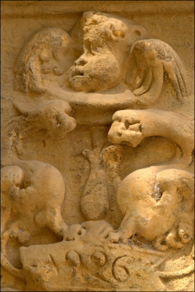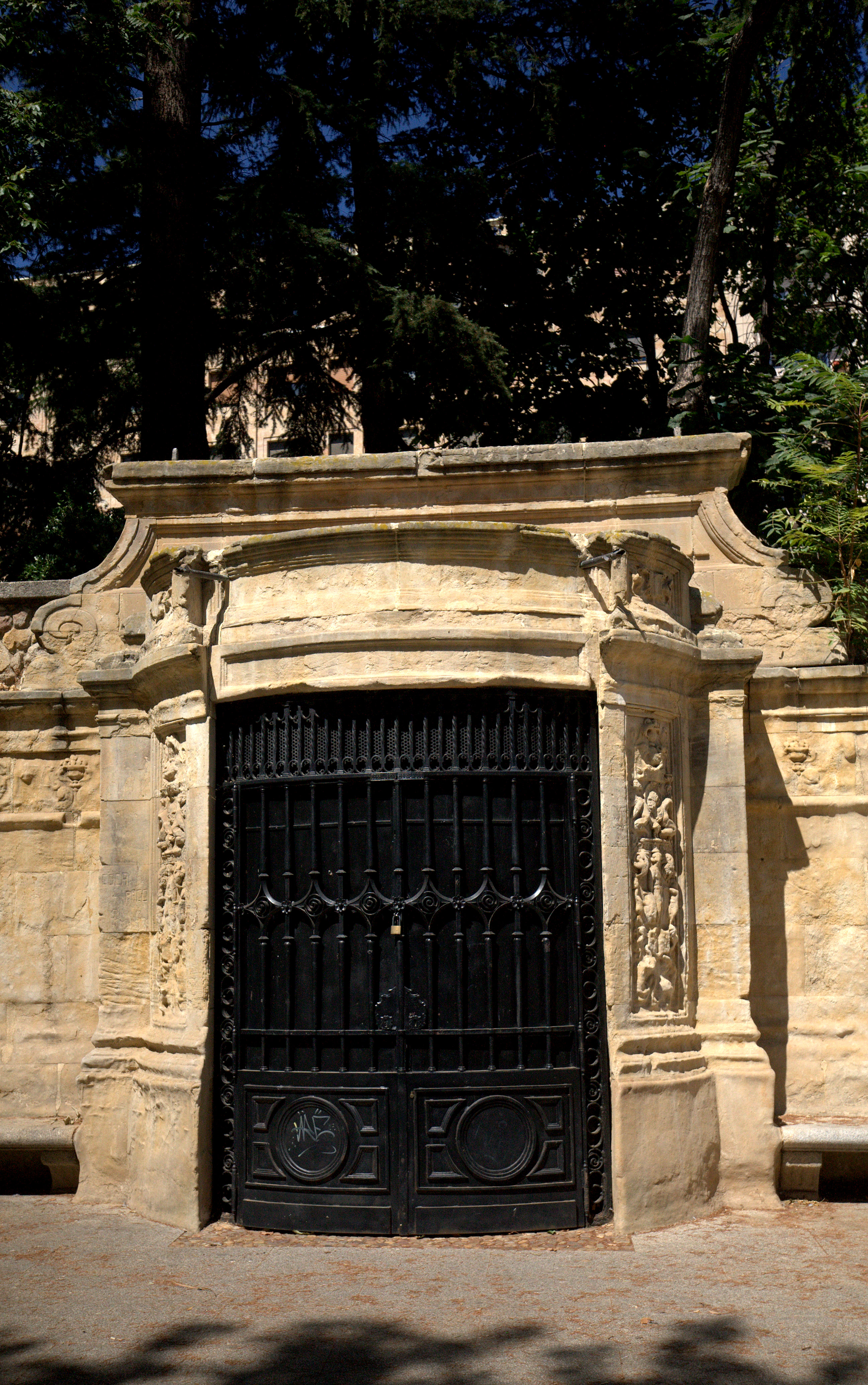 Tiene Salamanca, “Roma La Chica”, colinas y desniveles que se salvan con escaleras y muros de contención. Sillares de arenisca dúctil al cincel del cantero y frágiles a la intemperie, que se tallaron con precisión de orfebre en tiempos renacentistas y se recuperaron en ese neoplateresco de comienzos del siglo XX, tiempos en los que se rogaba a los arquitectos emular a quienes hicieron bellas las ciudades reviviendo su estilo característico ¿Cómo no volver a esculpir la piedra, adornar los sillares que contienen el desnivel que desciende hacia la hondonada del jardín antiguo?
