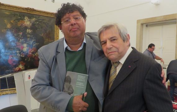 Gerardo Rodríguez y António Salvado, con el libro premiado (foto de Jacqueline Alencar)
