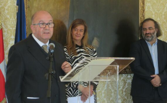 Victor Oliveira Mateus recibiendo el Diploma de Huésped distinguido de Salamanca, con la concejal Carmen Sánchez Bellota y A. P. Alencart