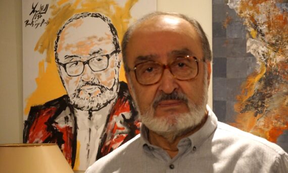 Sergio Macías y el retrato que le hizo Miguel Elías (foto de Raúl Hernández)