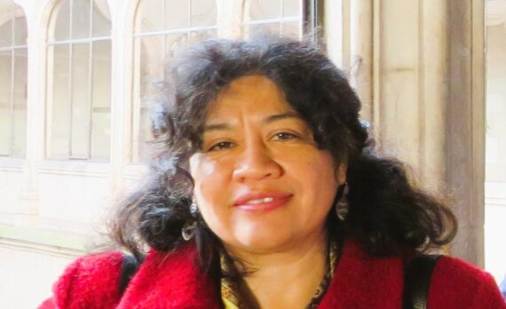 La poeta Sylvia Miranda en el edificio histórico de la Universidad de Salamanca (foto de Jacqueline Alencar)
