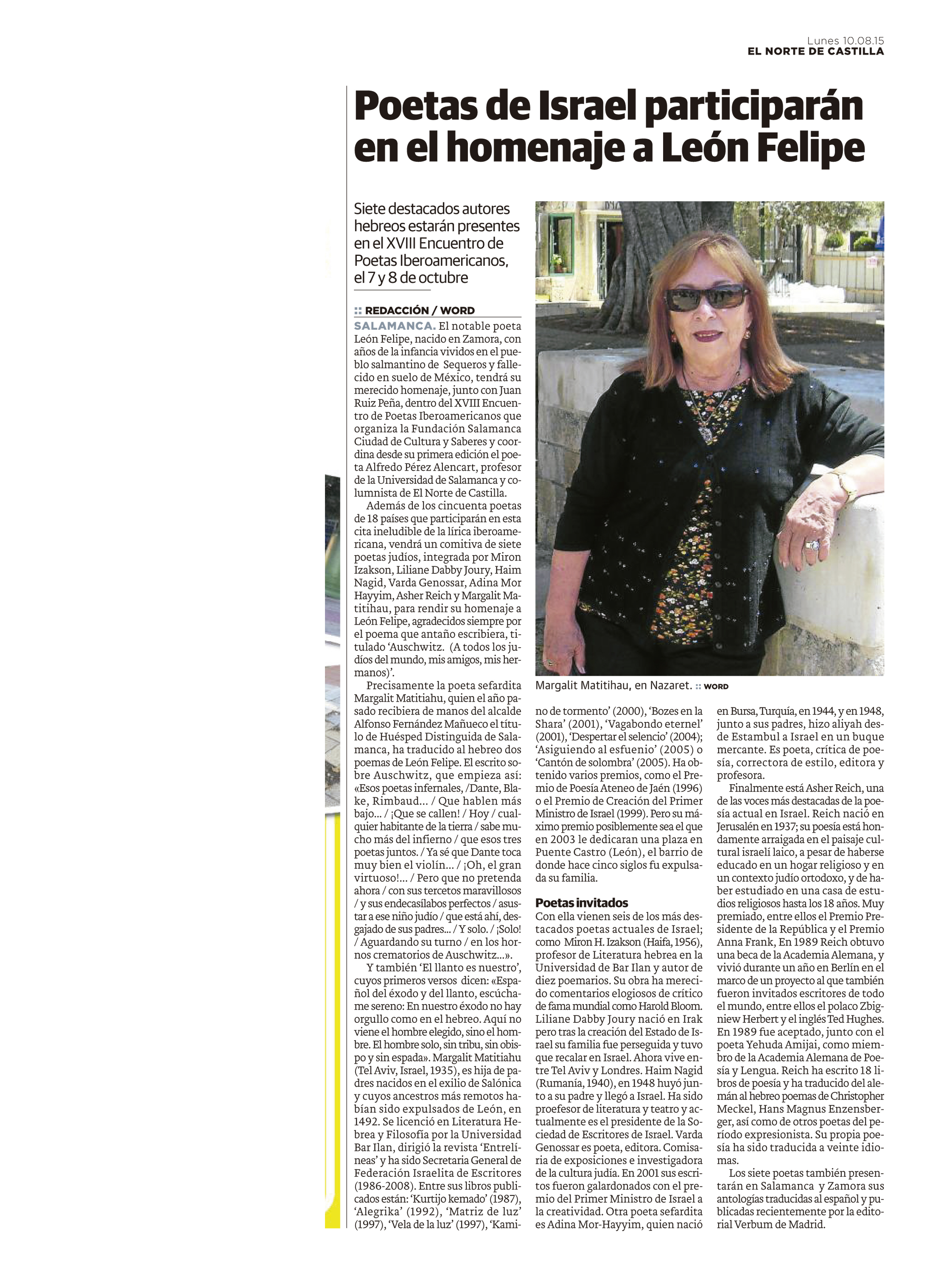 ESPECIAL LETRAS HEBREAS. XVIII ENCUENTRO DE POETAS IBEROAMERICANOS