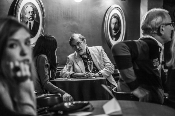 Con el tiempo y ya fuera de una casa, comencé a ver más allá del límite de la mesa propia. Comenzó el interés por lo que viven los demás, cómo se comunican, miradas, gestos. La intensidad, complicidad o el aburrimiento y distancia. Visitar bares, botiquines, expendios de cerveza donde surgen las expresiones más atractivas para una imagen.