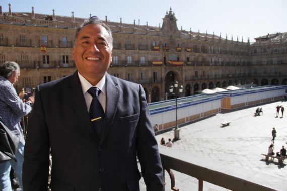 Hector Ñaupari en el balcón del Ayuntamiento de Salamanca