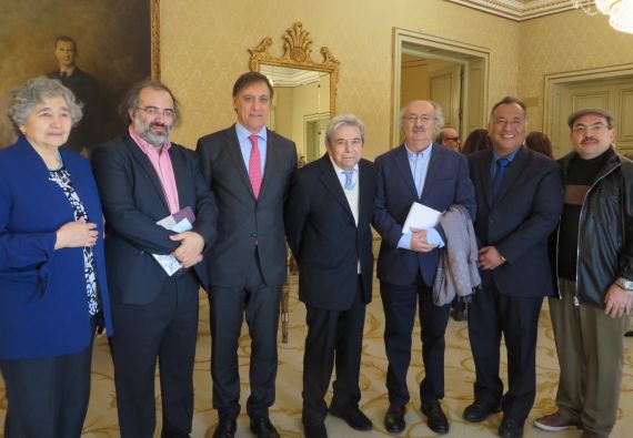 Popescu, Alencart, el alcalde de Salamanca Carlos García Carbayo, Salvado, Colinas Ñaupari y Arcanjo (foto de J. Alencar)
