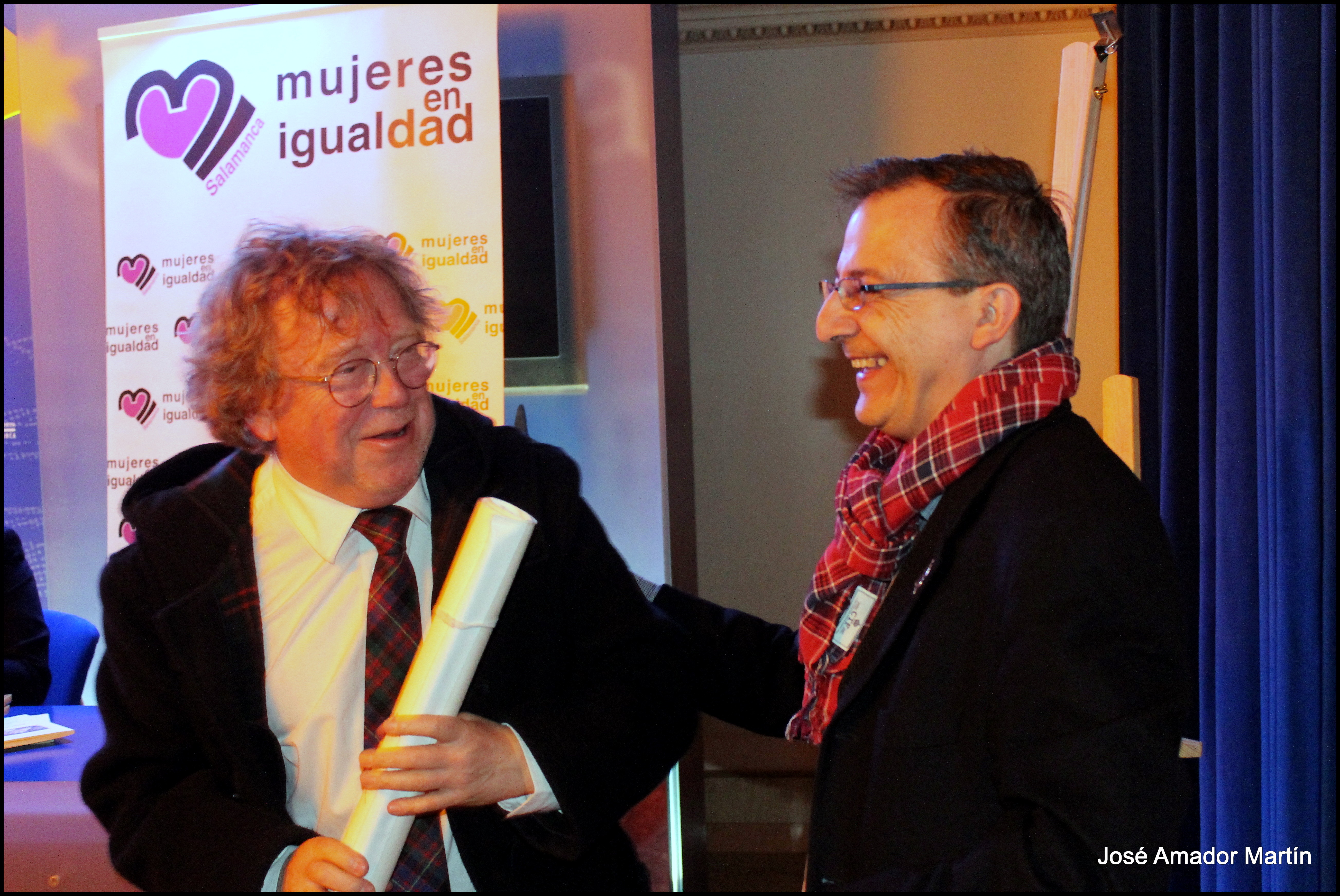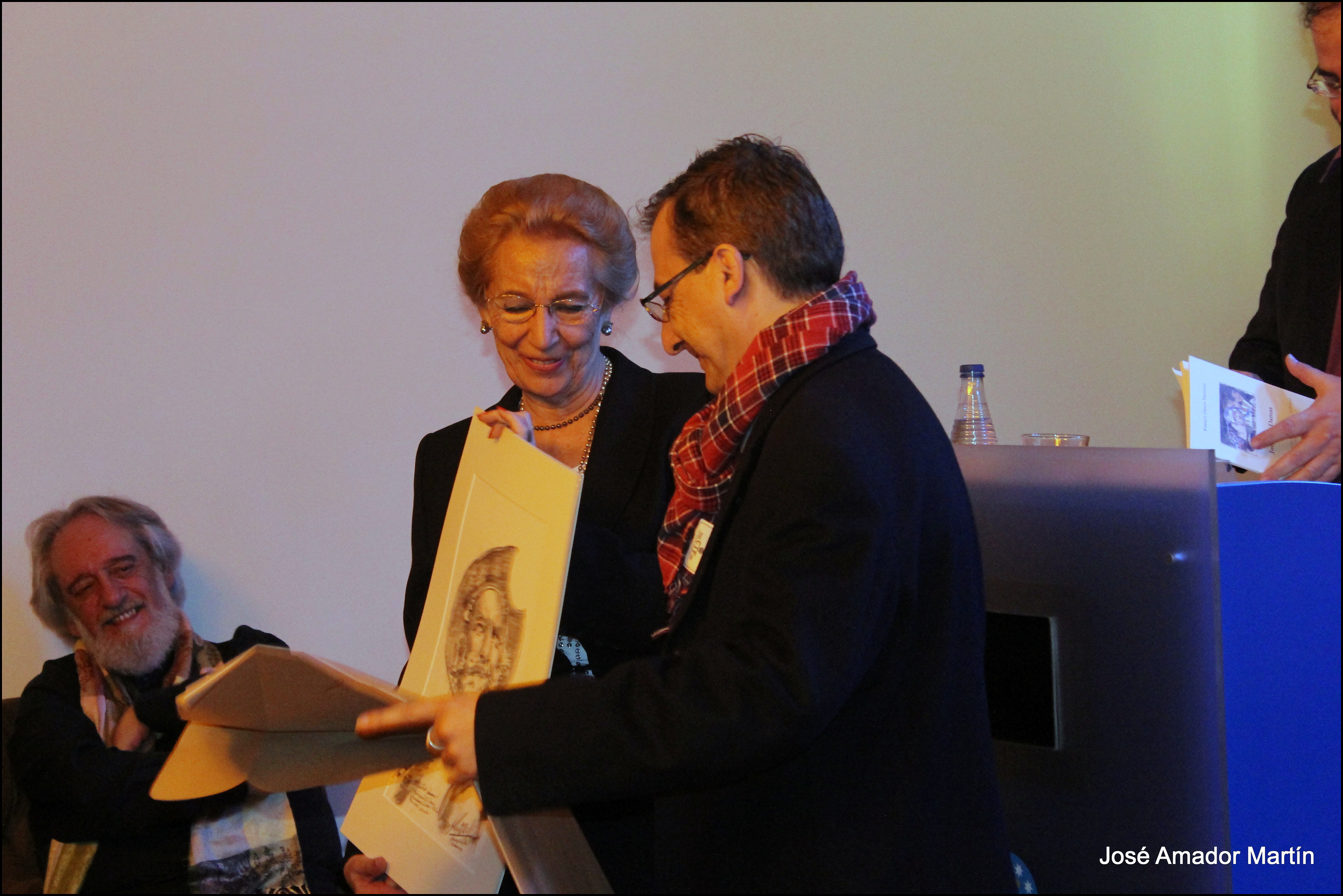 “Fue conmovedor ver a Amador (al poeta de la fotografía o al fotógrafo que pergeña textos poéticos sobre su ciudad amada) entusiasmado en la Sala de la Palabra, buscando el mejor ángulo o posición para disparar para así atrapar imágenes. Iba de un lado a otro, a pesar del cansancio de las tareas de todo el día y del despertar madrugador a que nos tiene acostumbrados: fotos y más fotos: de los poetas premiados (Juan Cameron y Enrique Gracia Trinidad); de la Dama de la Cultura; de las organizadoras; de Elías con su Quijote, de Stuart Park leyendo su versión inglesa; del público que llenaba ese recinto del Teatro Liceo; de María Koutentaki leyendo en Griego el poema ‘Países’ de Juan Cameron; más de lo mismo, captando el instante de Nely Iglesias cuando leía en el idioma de Goethe… Y claro, Carmen Ruiz Barrionuevo, explicando el contenido del libro premiado, la clarinetista que abrió y cerró el acto; las nietas y demás familiares de Pilar Fernández Labrador, feliz, comprobando cómo el Premio que tan merecidamente lleva su nombre, ha logrado una adultez incomparable en tan sólo dos convocatorias…