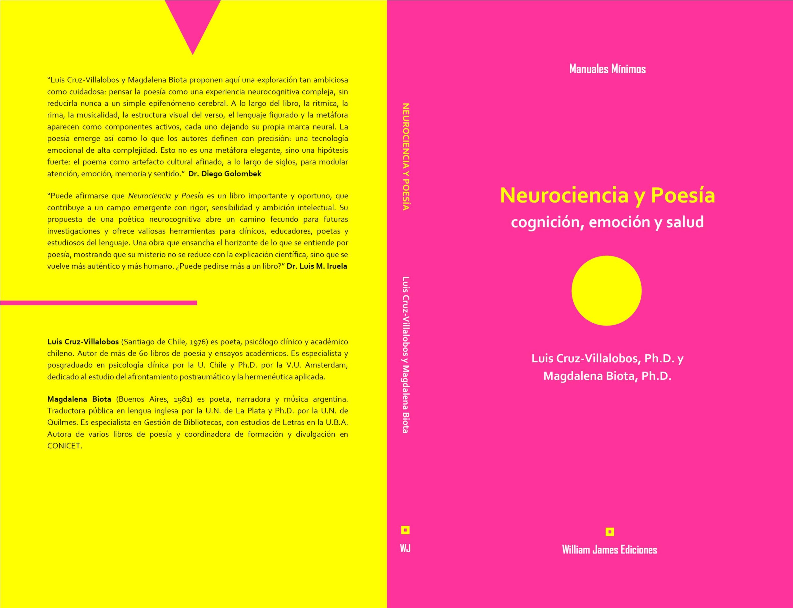 Crear en Salamanca tiene el agrado de presentar con sus lectores un texto del científico Diego A. Golombek, que introduce el nuevo libro del psicólogo y poeta chileno Luis Cruz-Villalobos y la académica y poeta argentina Magdalena Biota, titulado Neurociencia y Poesía: cognición, emoción y salud (William James Ediciones, Colección Manuales Mínimos, 2026), el cual que aborda las significativas conexiones que se han descubierto entre neurociencia y poesía.
