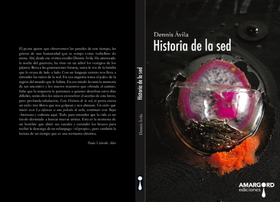 Pero ahora estamos ante un poemario entre excelente y meditado de Dennis Ávila, que se titula, precisamente, “Historia de la sed”, otro proyecto de Amargord Ediciones (2019).
