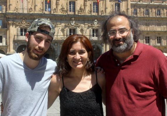 José Alfredo Pérez Alencar, Jacqueline y Alfredo en la Plaza Mayor de Salamanca (Foto de José Amador Martín, 2017