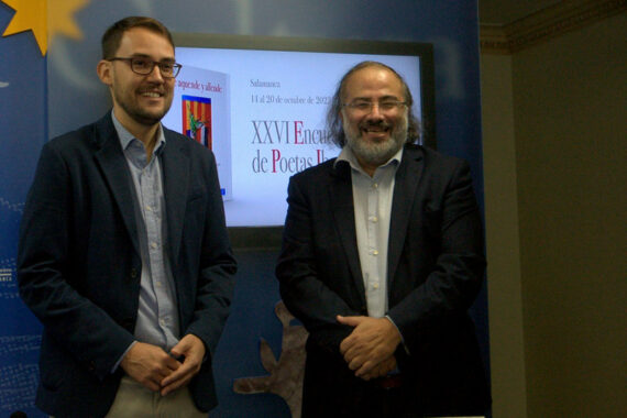 Crear en Salamanca tiene el privilegio de publicar la nota de prensa enviada por el Ayuntamiento de Salamanca, así como el programa general del reconocido Encuentro de Poetas Iberoamericanos de Salamanca. También publicamos algunas fotos de la rueda de prensa celebrada hoy en la Sala de la Palabra del Teatro Liceo, donde participaron Ángel Fernández, concejal de Cultura del Ayuntamiento de Salamanca, y Alfredo Pérez Alencart, poeta, profesor de la Universidad de Salamanca y director de estos Encuentros. Las mismas fueron tomadas por José Amador Martín y Alex Lorrys.